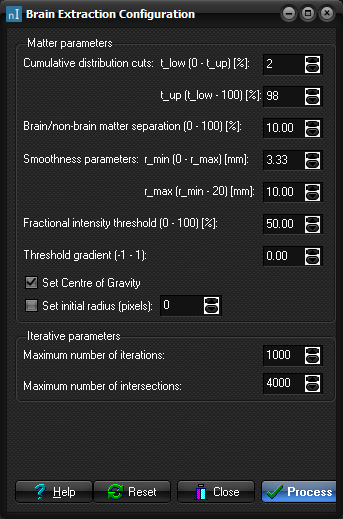 brain extraction parameters.