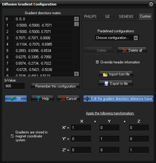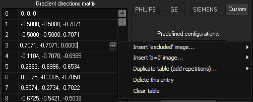 The DTI Gradient Configuration dialog can be displayed by clicking on