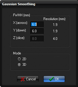 where X,Y is the in-plane values and Z the through-plane (slice-direction)