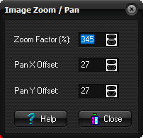 The Image Zoom / Pan dialog box is displayed when you choose the Zoom/Pan