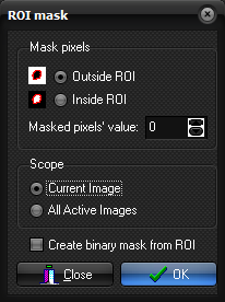 Mask pixels Outside ROI / Inside ROI When Inside ROI is selected, the pixels inside the ROI