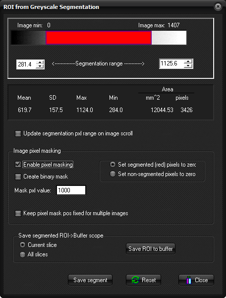 ROI from Grayscale Segmentation dialog box is displayed when selecting