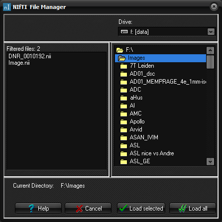The Nifti file manager provides the ability to locate Nifti (.nii) format files and