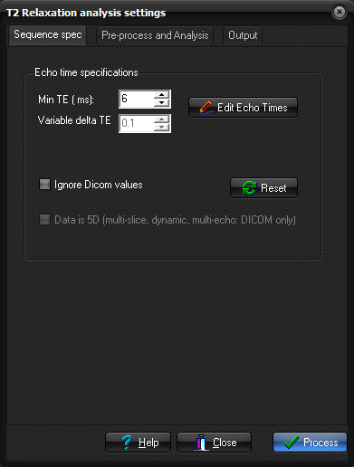 you set the parameters relevant for the T2 curve fitting: Echo time
