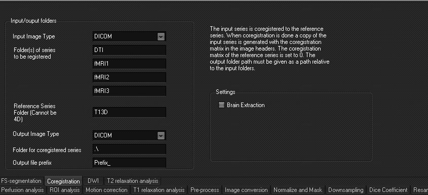 - You can specify a folder where the new generated coregistered series is to be stored. If this is left